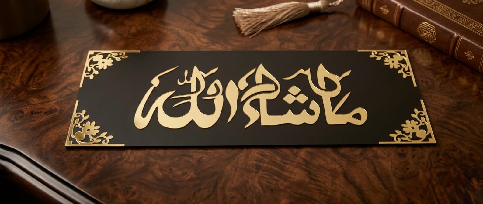 Design: Modern 3D-effect calligraphy with traditional ornamental borders.